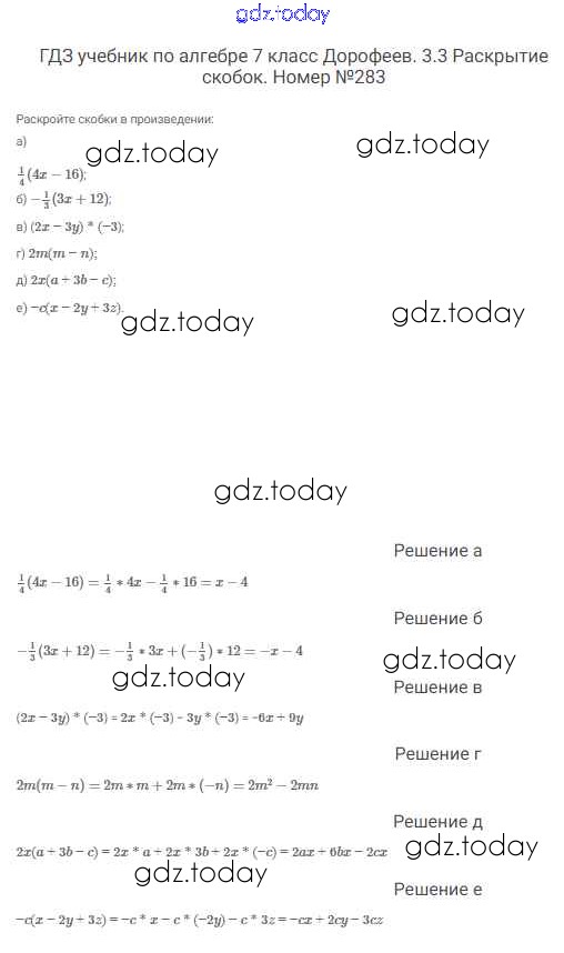 На страницах сайта gdz.today вы найдете учебный и вспомогательный материал, направленный на улучшения знаний школьной программы. ГДЗ - онлайн мир знаний Решение к упражнениям 283 Учебнику по Алгебре для 7 класса Дорофеев, Суворова Просвещение Академический школьный учебник 2020