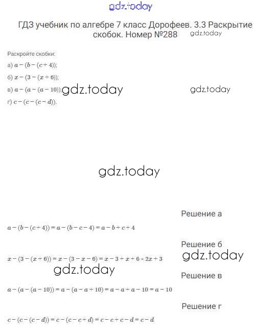 На страницах сайта gdz.today вы найдете учебный и вспомогательный материал, направленный на улучшения знаний школьной программы. ГДЗ - онлайн мир знаний Решение к упражнениям 288 Учебнику по Алгебре для 7 класса Дорофеев, Суворова Просвещение Академический школьный учебник 2020