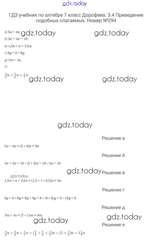На страницах сайта gdz.today вы найдете учебный и вспомогательный материал, направленный на улучшения знаний школьной программы. ГДЗ - онлайн мир знаний Решение к упражнениям 294 Учебнику по Алгебре для 7 класса Дорофеев, Суворова Просвещение Академический школьный учебник 2020