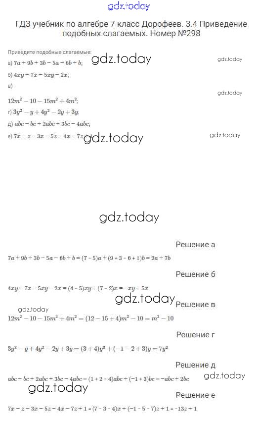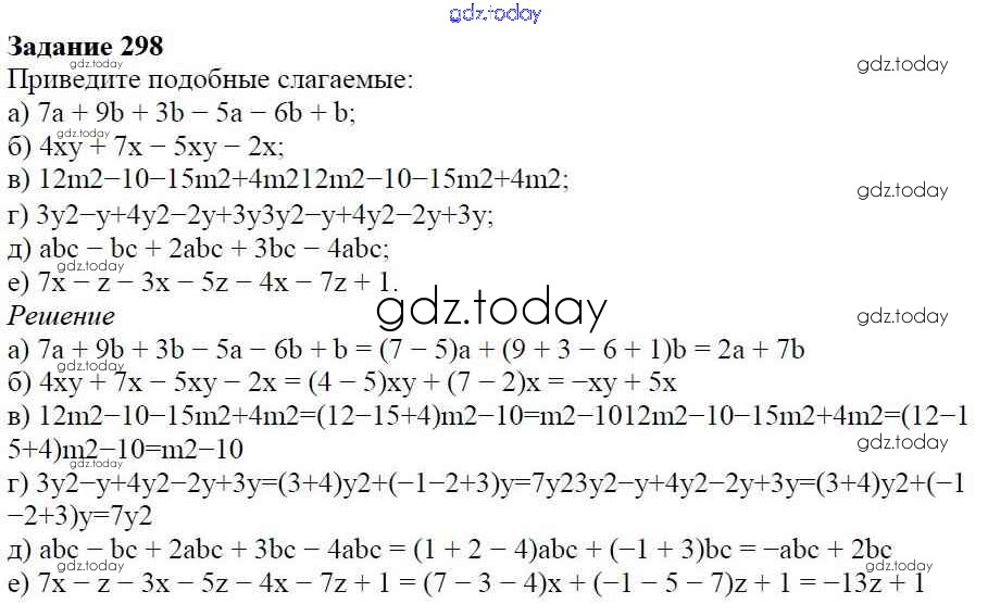 На страницах сайта gdz.today вы найдете учебный и вспомогательный материал, направленный на улучшения знаний школьной программы. ГДЗ - онлайн мир знаний Решение к упражнениям 298 Учебнику по Алгебре для 7 класса Дорофеев, Суворова Просвещение Академический школьный учебник 2020