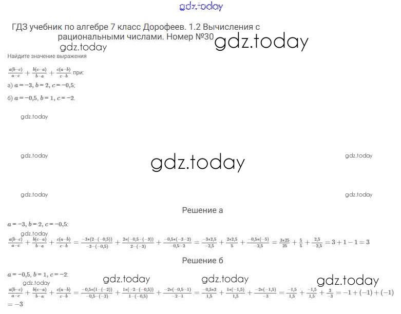 На страницах сайта gdz.today вы найдете учебный и вспомогательный материал, направленный на улучшения знаний школьной программы. ГДЗ - онлайн мир знаний Решение к упражнениям 30 Учебнику по Алгебре для 7 класса Дорофеев, Суворова Просвещение Академический школьный учебник 2020