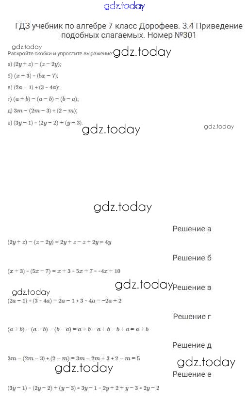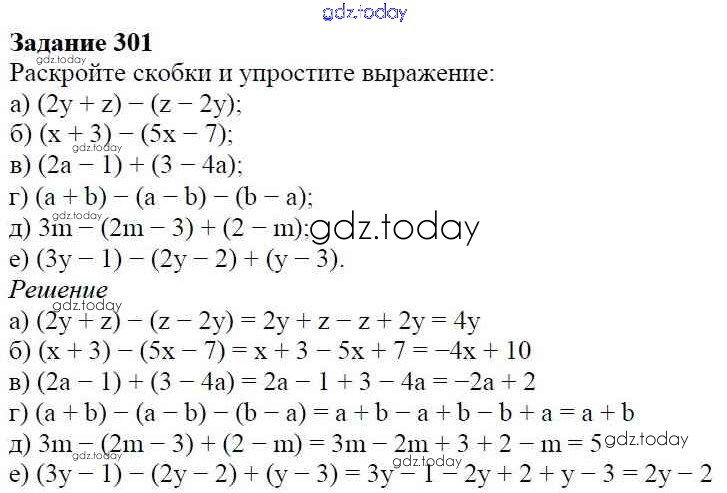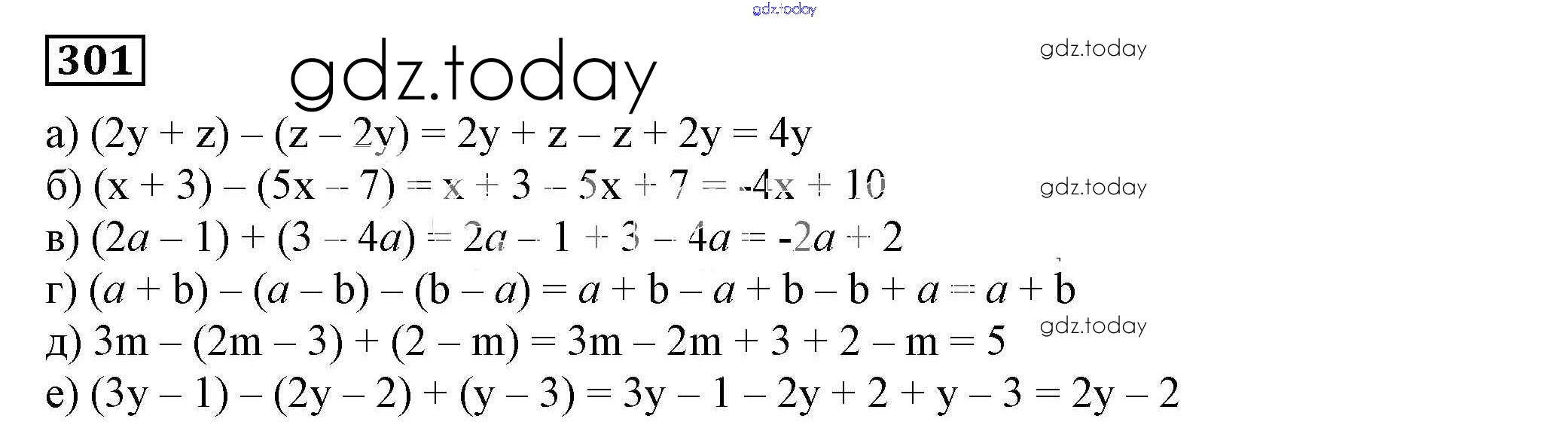 На страницах сайта gdz.today вы найдете учебный и вспомогательный материал, направленный на улучшения знаний школьной программы. ГДЗ - онлайн мир знаний Решение к упражнениям 301 Учебнику по Алгебре для 7 класса Дорофеев, Суворова Просвещение Академический школьный учебник 2020