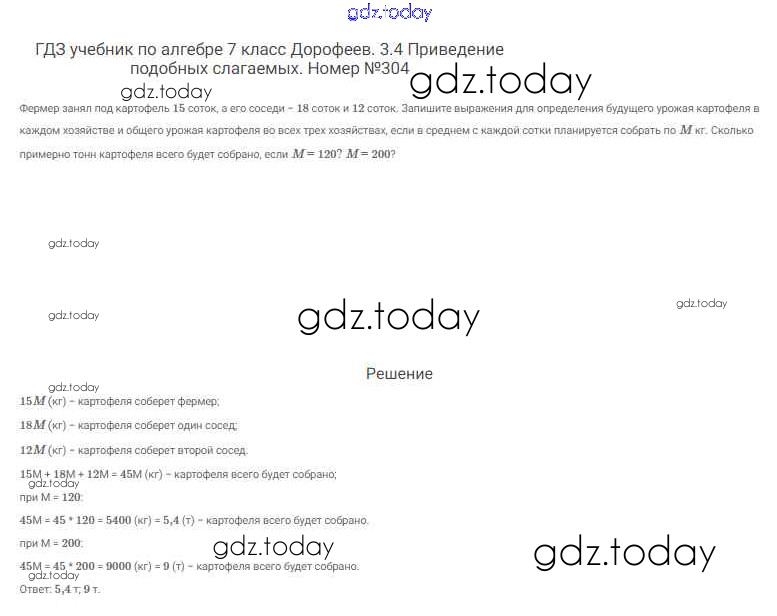 На страницах сайта gdz.today вы найдете учебный и вспомогательный материал, направленный на улучшения знаний школьной программы. ГДЗ - онлайн мир знаний Решение к упражнениям 304 Учебнику по Алгебре для 7 класса Дорофеев, Суворова Просвещение Академический школьный учебник 2020