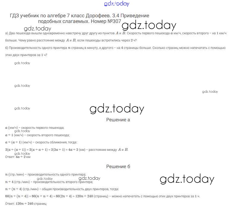 На страницах сайта gdz.today вы найдете учебный и вспомогательный материал, направленный на улучшения знаний школьной программы. ГДЗ - онлайн мир знаний Решение к упражнениям 307 Учебнику по Алгебре для 7 класса Дорофеев, Суворова Просвещение Академический школьный учебник 2020