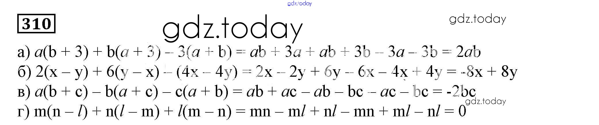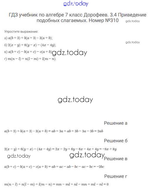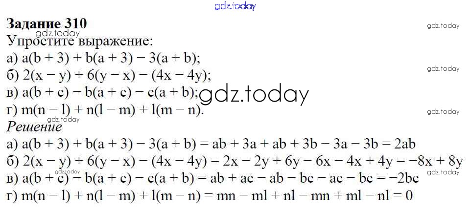 На страницах сайта gdz.today вы найдете учебный и вспомогательный материал, направленный на улучшения знаний школьной программы. ГДЗ - онлайн мир знаний Решение к упражнениям 310 Учебнику по Алгебре для 7 класса Дорофеев, Суворова Просвещение Академический школьный учебник 2020