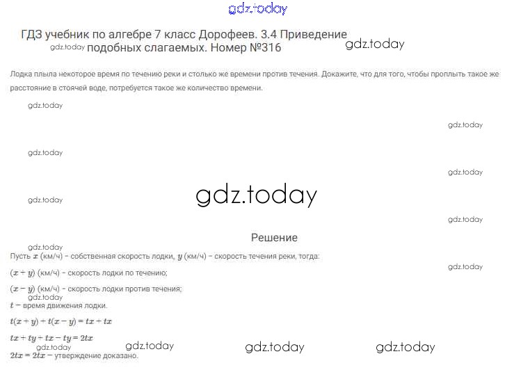 На страницах сайта gdz.today вы найдете учебный и вспомогательный материал, направленный на улучшения знаний школьной программы. ГДЗ - онлайн мир знаний Решение к упражнениям 316 Учебнику по Алгебре для 7 класса Дорофеев, Суворова Просвещение Академический школьный учебник 2020
