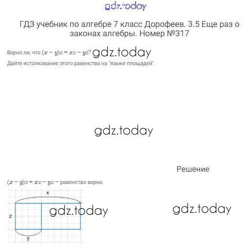 На страницах сайта gdz.today вы найдете учебный и вспомогательный материал, направленный на улучшения знаний школьной программы. ГДЗ - онлайн мир знаний Решение к упражнениям 317 Учебнику по Алгебре для 7 класса Дорофеев, Суворова Просвещение Академический школьный учебник 2020