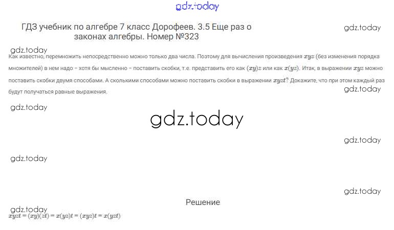 На страницах сайта gdz.today вы найдете учебный и вспомогательный материал, направленный на улучшения знаний школьной программы. ГДЗ - онлайн мир знаний Решение к упражнениям 323 Учебнику по Алгебре для 7 класса Дорофеев, Суворова Просвещение Академический школьный учебник 2020