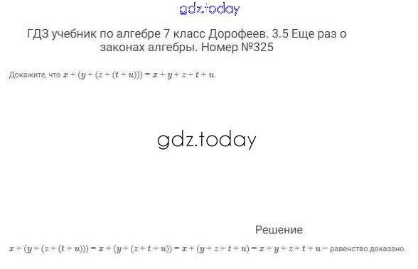 На страницах сайта gdz.today вы найдете учебный и вспомогательный материал, направленный на улучшения знаний школьной программы. ГДЗ - онлайн мир знаний Решение к упражнениям 325 Учебнику по Алгебре для 7 класса Дорофеев, Суворова Просвещение Академический школьный учебник 2020