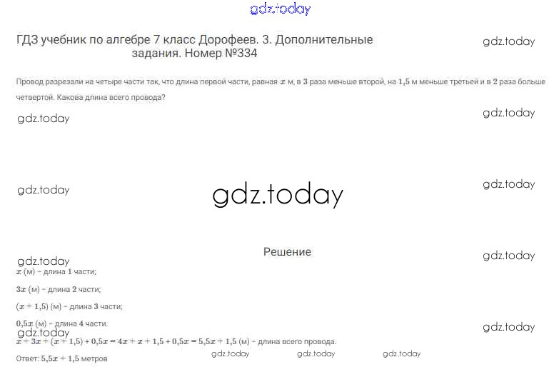 На страницах сайта gdz.today вы найдете учебный и вспомогательный материал, направленный на улучшения знаний школьной программы. ГДЗ - онлайн мир знаний Решение к упражнениям 334 Учебнику по Алгебре для 7 класса Дорофеев, Суворова Просвещение Академический школьный учебник 2020