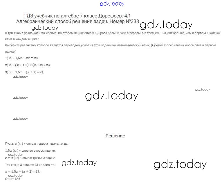 Ответы к Решение к упражнениям 338 Учебнику по Алгебре для 7 класса Дорофеев, Суворова Просвещение Академический школьный учебник 2020