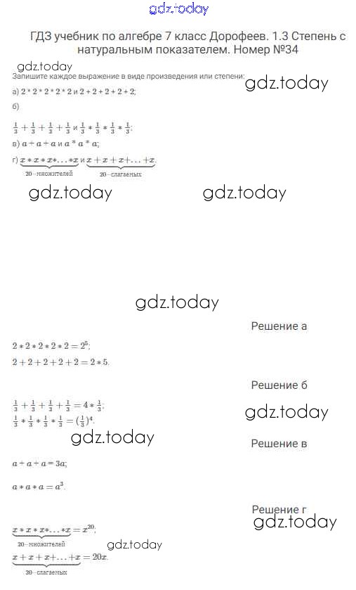 На страницах сайта gdz.today вы найдете учебный и вспомогательный материал, направленный на улучшения знаний школьной программы. ГДЗ - онлайн мир знаний Решение к упражнениям 34 Учебнику по Алгебре для 7 класса Дорофеев, Суворова Просвещение Академический школьный учебник 2020