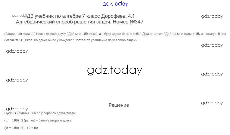 Ответы к Решение к упражнениям 347 Учебнику по Алгебре для 7 класса Дорофеев, Суворова Просвещение Академический школьный учебник 2020