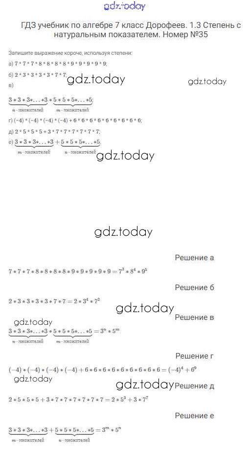 На страницах сайта gdz.today вы найдете учебный и вспомогательный материал, направленный на улучшения знаний школьной программы. ГДЗ - онлайн мир знаний Решение к упражнениям 35 Учебнику по Алгебре для 7 класса Дорофеев, Суворова Просвещение Академический школьный учебник 2020