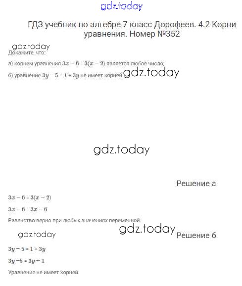 На страницах сайта gdz.today вы найдете учебный и вспомогательный материал, направленный на улучшения знаний школьной программы. ГДЗ - онлайн мир знаний Решение к упражнениям 352 Учебнику по Алгебре для 7 класса Дорофеев, Суворова Просвещение Академический школьный учебник 2020