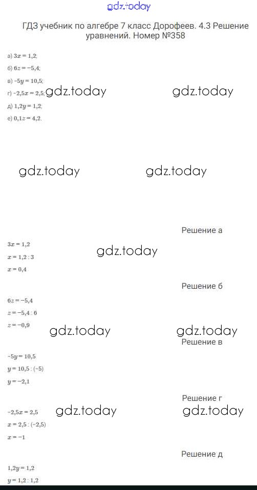 На страницах сайта gdz.today вы найдете учебный и вспомогательный материал, направленный на улучшения знаний школьной программы. ГДЗ - онлайн мир знаний Решение к упражнениям 358 Учебнику по Алгебре для 7 класса Дорофеев, Суворова Просвещение Академический школьный учебник 2020