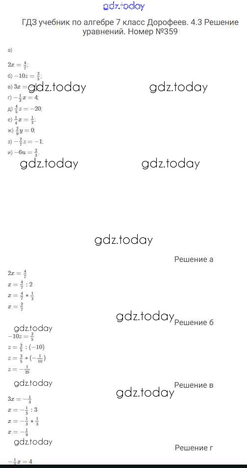 На страницах сайта gdz.today вы найдете учебный и вспомогательный материал, направленный на улучшения знаний школьной программы. ГДЗ - онлайн мир знаний Решение к упражнениям 359 Учебнику по Алгебре для 7 класса Дорофеев, Суворова Просвещение Академический школьный учебник 2020