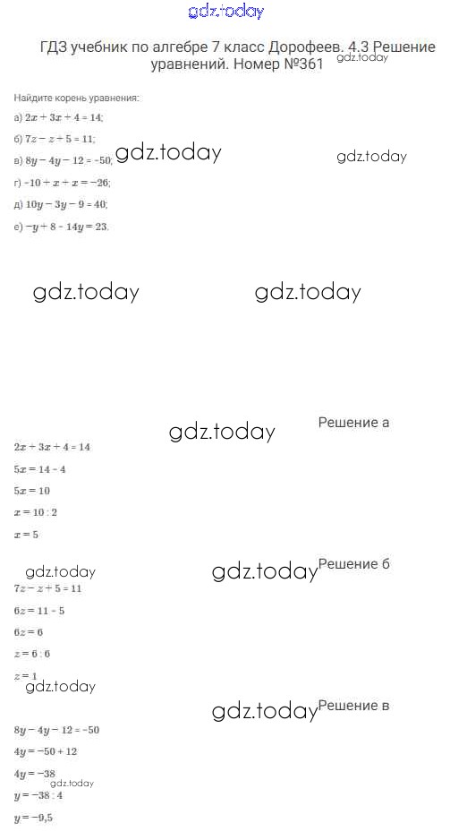 На страницах сайта gdz.today вы найдете учебный и вспомогательный материал, направленный на улучшения знаний школьной программы. ГДЗ - онлайн мир знаний Решение к упражнениям 361 Учебнику по Алгебре для 7 класса Дорофеев, Суворова Просвещение Академический школьный учебник 2020