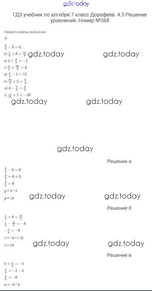 На страницах сайта gdz.today вы найдете учебный и вспомогательный материал, направленный на улучшения знаний школьной программы. ГДЗ - онлайн мир знаний Решение к упражнениям 368 Учебнику по Алгебре для 7 класса Дорофеев, Суворова Просвещение Академический школьный учебник 2020