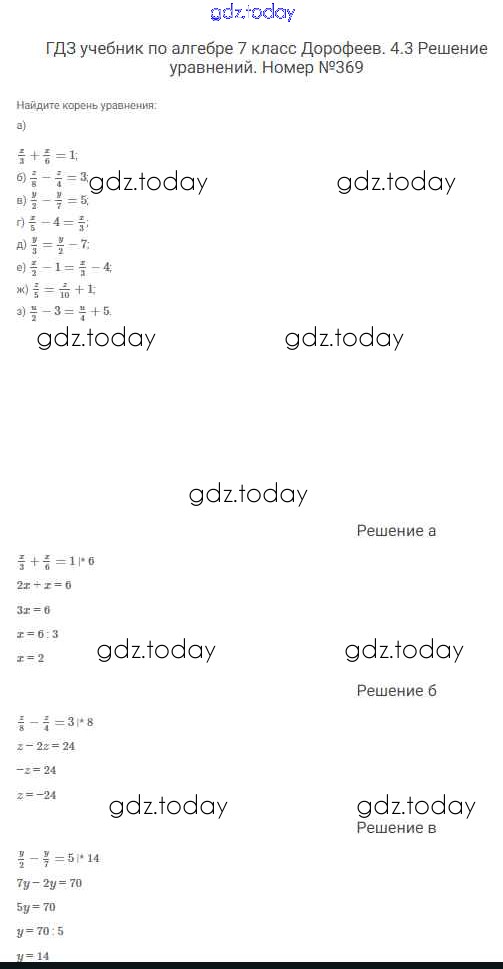 На страницах сайта gdz.today вы найдете учебный и вспомогательный материал, направленный на улучшения знаний школьной программы. ГДЗ - онлайн мир знаний Решение к упражнениям 369 Учебнику по Алгебре для 7 класса Дорофеев, Суворова Просвещение Академический школьный учебник 2020