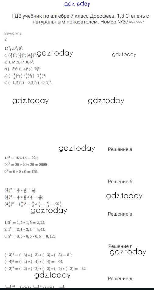 Ответы к Решение к упражнениям 37 Учебнику по Алгебре для 7 класса Дорофеев, Суворова Просвещение Академический школьный учебник 2020