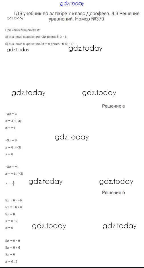 На страницах сайта gdz.today вы найдете учебный и вспомогательный материал, направленный на улучшения знаний школьной программы. ГДЗ - онлайн мир знаний Решение к упражнениям 370 Учебнику по Алгебре для 7 класса Дорофеев, Суворова Просвещение Академический школьный учебник 2020