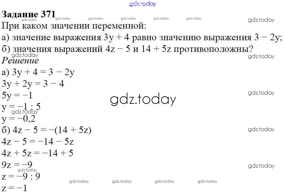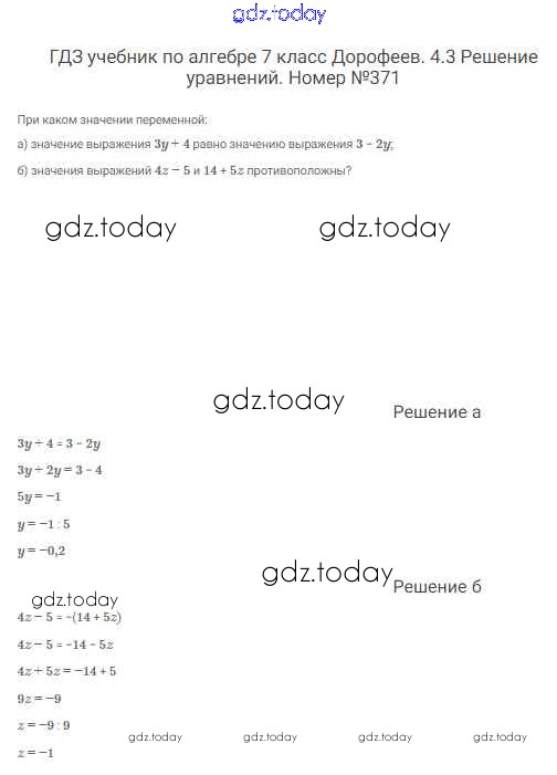 На страницах сайта gdz.today вы найдете учебный и вспомогательный материал, направленный на улучшения знаний школьной программы. ГДЗ - онлайн мир знаний Решение к упражнениям 371 Учебнику по Алгебре для 7 класса Дорофеев, Суворова Просвещение Академический школьный учебник 2020