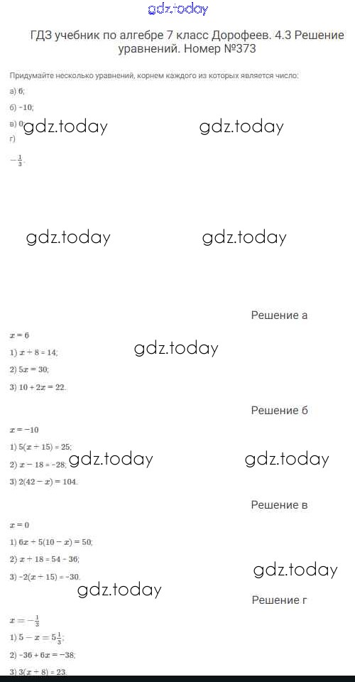 На страницах сайта gdz.today вы найдете учебный и вспомогательный материал, направленный на улучшения знаний школьной программы. ГДЗ - онлайн мир знаний Решение к упражнениям 373 Учебнику по Алгебре для 7 класса Дорофеев, Суворова Просвещение Академический школьный учебник 2020