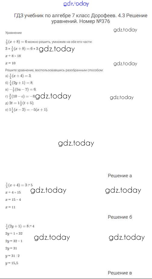 На страницах сайта gdz.today вы найдете учебный и вспомогательный материал, направленный на улучшения знаний школьной программы. ГДЗ - онлайн мир знаний Решение к упражнениям 376 Учебнику по Алгебре для 7 класса Дорофеев, Суворова Просвещение Академический школьный учебник 2020