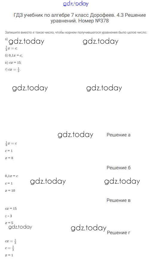 На страницах сайта gdz.today вы найдете учебный и вспомогательный материал, направленный на улучшения знаний школьной программы. ГДЗ - онлайн мир знаний Решение к упражнениям 378 Учебнику по Алгебре для 7 класса Дорофеев, Суворова Просвещение Академический школьный учебник 2020
