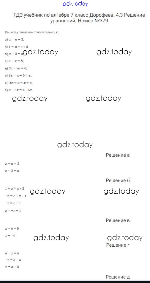 На страницах сайта gdz.today вы найдете учебный и вспомогательный материал, направленный на улучшения знаний школьной программы. ГДЗ - онлайн мир знаний Решение к упражнениям 379 Учебнику по Алгебре для 7 класса Дорофеев, Суворова Просвещение Академический школьный учебник 2020