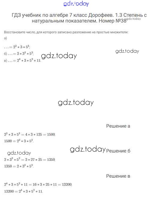 На страницах сайта gdz.today вы найдете учебный и вспомогательный материал, направленный на улучшения знаний школьной программы. ГДЗ - онлайн мир знаний Решение к упражнениям 38 Учебнику по Алгебре для 7 класса Дорофеев, Суворова Просвещение Академический школьный учебник 2020