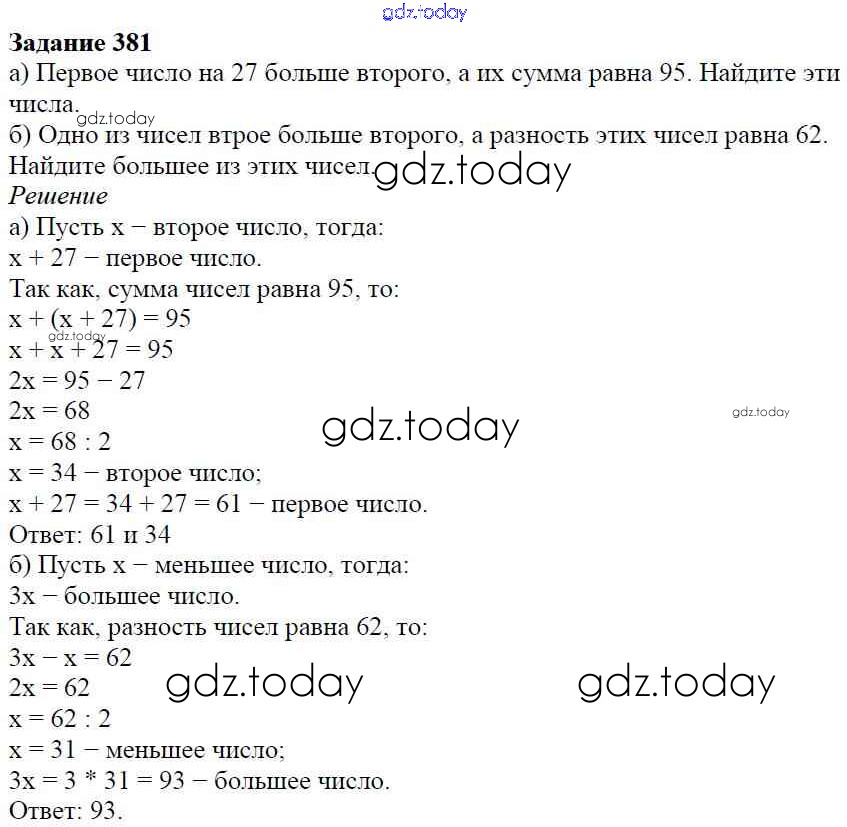 На страницах сайта gdz.today вы найдете учебный и вспомогательный материал, направленный на улучшения знаний школьной программы. ГДЗ - онлайн мир знаний Решение к упражнениям 381 Учебнику по Алгебре для 7 класса Дорофеев, Суворова Просвещение Академический школьный учебник 2020