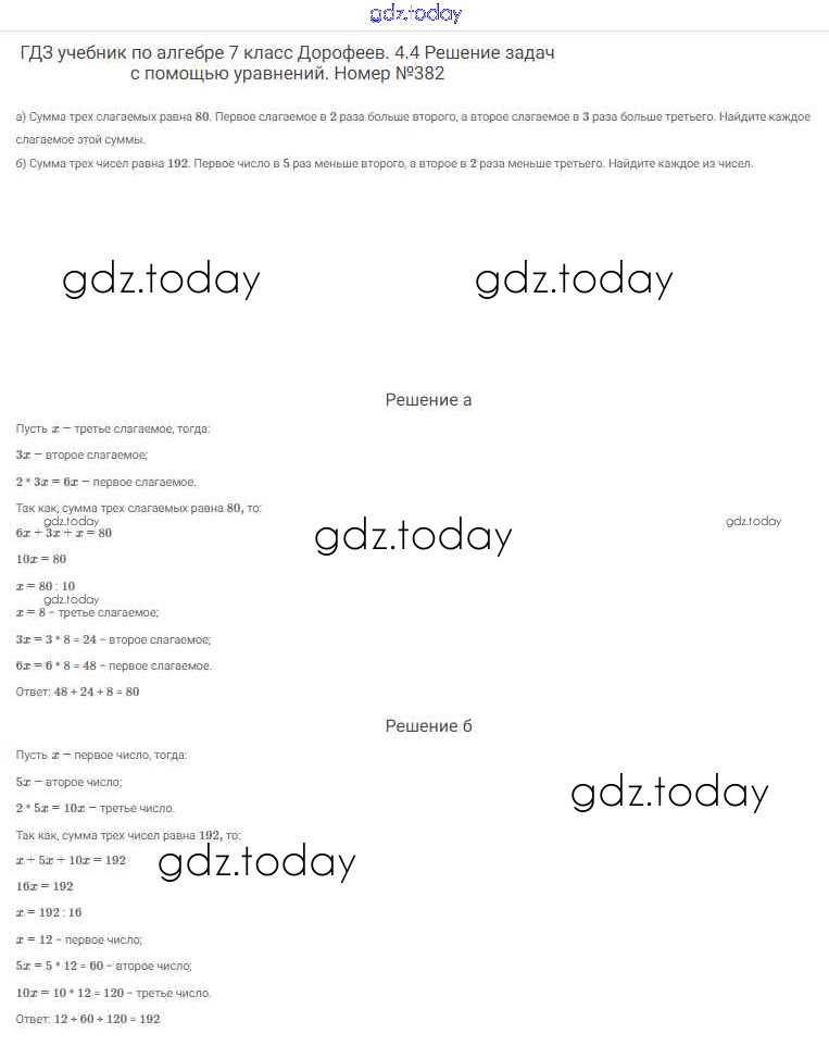 На страницах сайта gdz.today вы найдете учебный и вспомогательный материал, направленный на улучшения знаний школьной программы. ГДЗ - онлайн мир знаний Решение к упражнениям 382 Учебнику по Алгебре для 7 класса Дорофеев, Суворова Просвещение Академический школьный учебник 2020