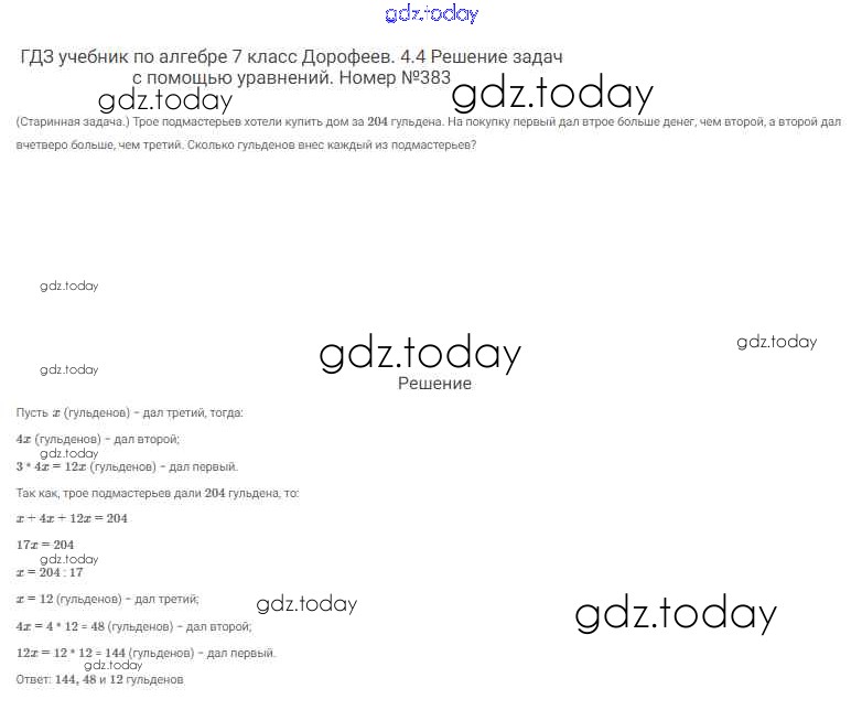 Ответы к Решение к упражнениям 383 Учебнику по Алгебре для 7 класса Дорофеев, Суворова Просвещение Академический школьный учебник 2020
