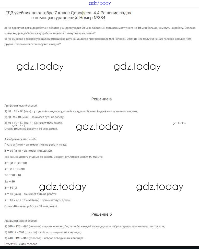 На страницах сайта gdz.today вы найдете учебный и вспомогательный материал, направленный на улучшения знаний школьной программы. ГДЗ - онлайн мир знаний Решение к упражнениям 384 Учебнику по Алгебре для 7 класса Дорофеев, Суворова Просвещение Академический школьный учебник 2020