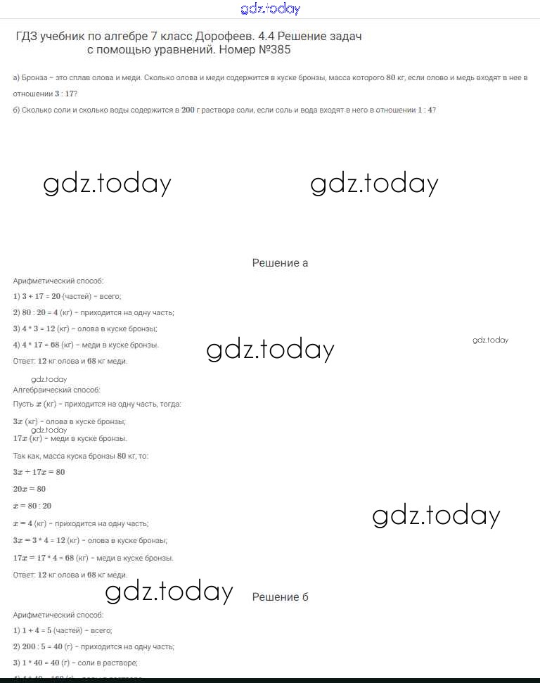 Ответы к Решение к упражнениям 385 Учебнику по Алгебре для 7 класса Дорофеев, Суворова Просвещение Академический школьный учебник 2020