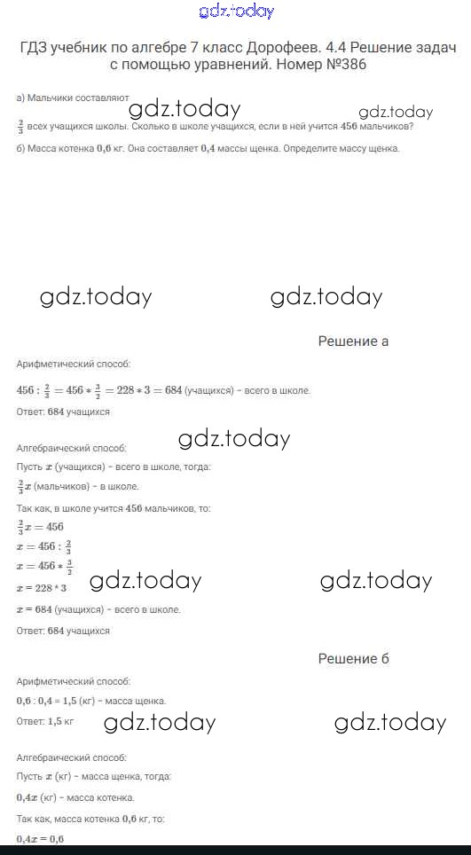 Ответы к Решение к упражнениям 386 Учебнику по Алгебре для 7 класса Дорофеев, Суворова Просвещение Академический школьный учебник 2020