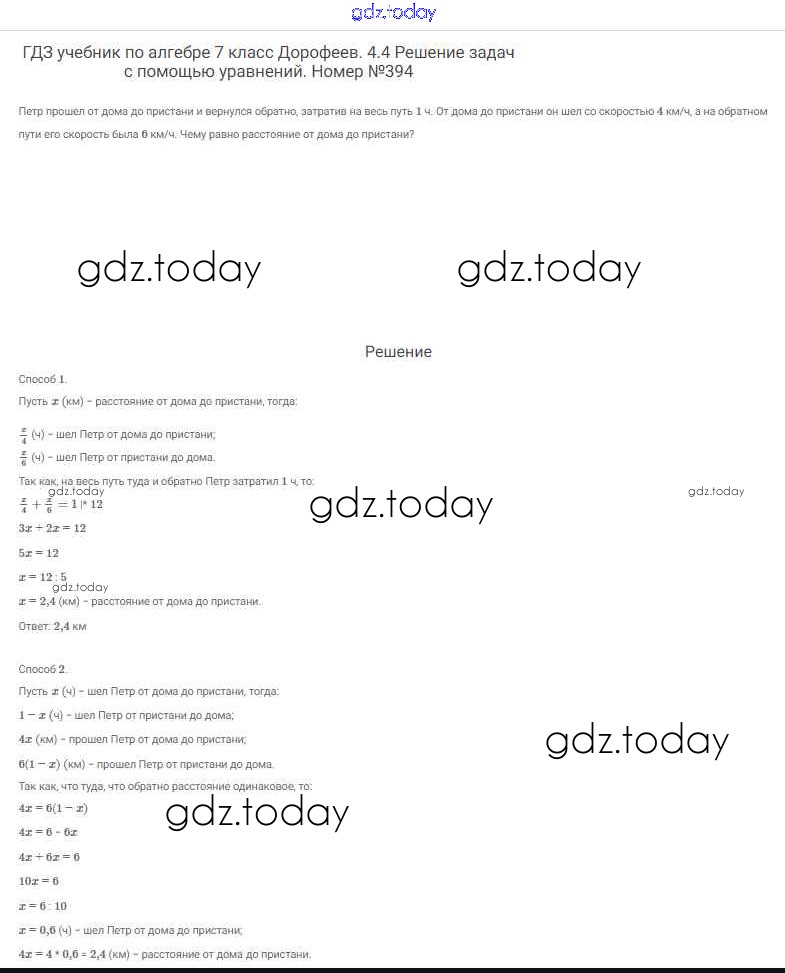 На страницах сайта gdz.today вы найдете учебный и вспомогательный материал, направленный на улучшения знаний школьной программы. ГДЗ - онлайн мир знаний Решение к упражнениям 394 Учебнику по Алгебре для 7 класса Дорофеев, Суворова Просвещение Академический школьный учебник 2020
