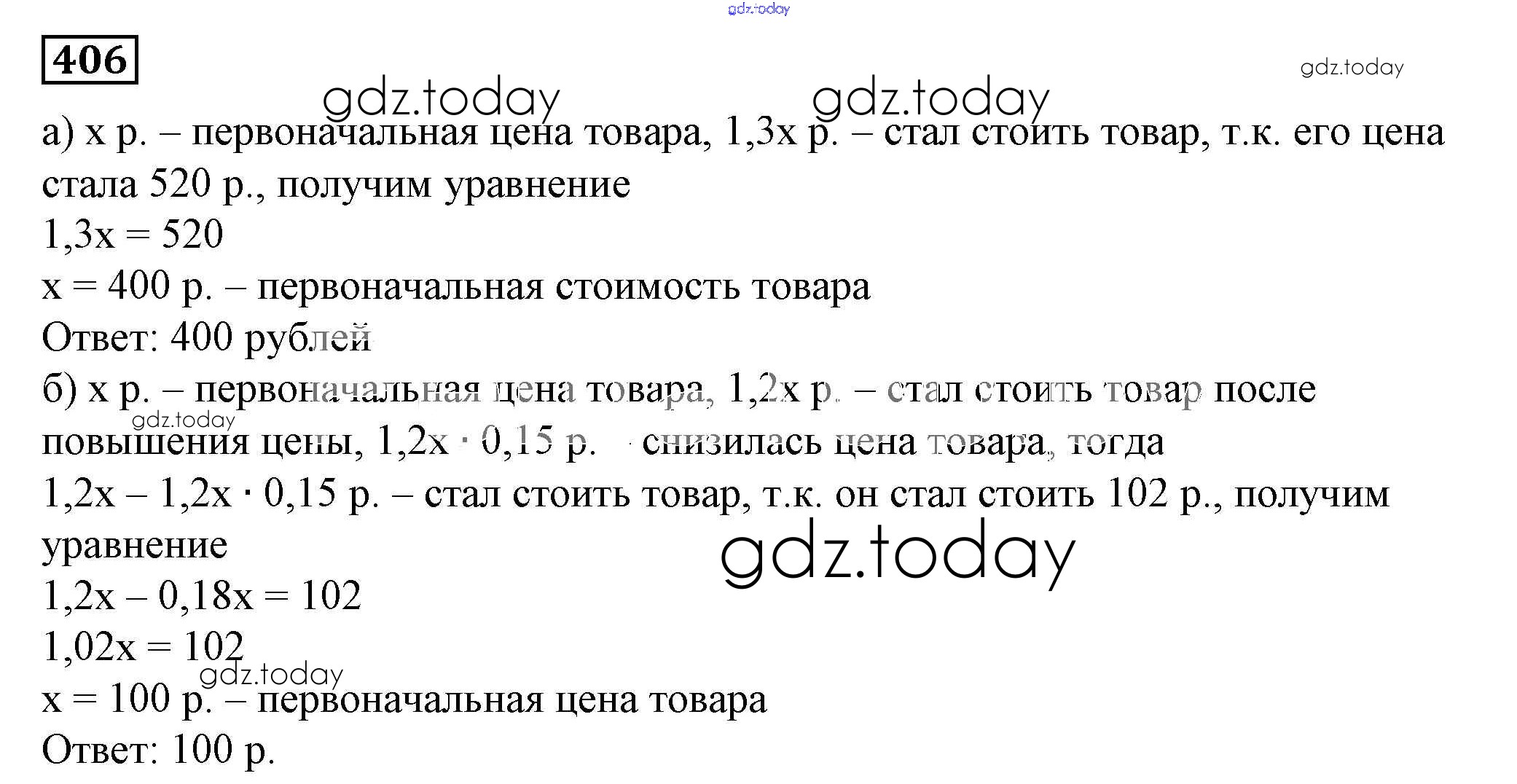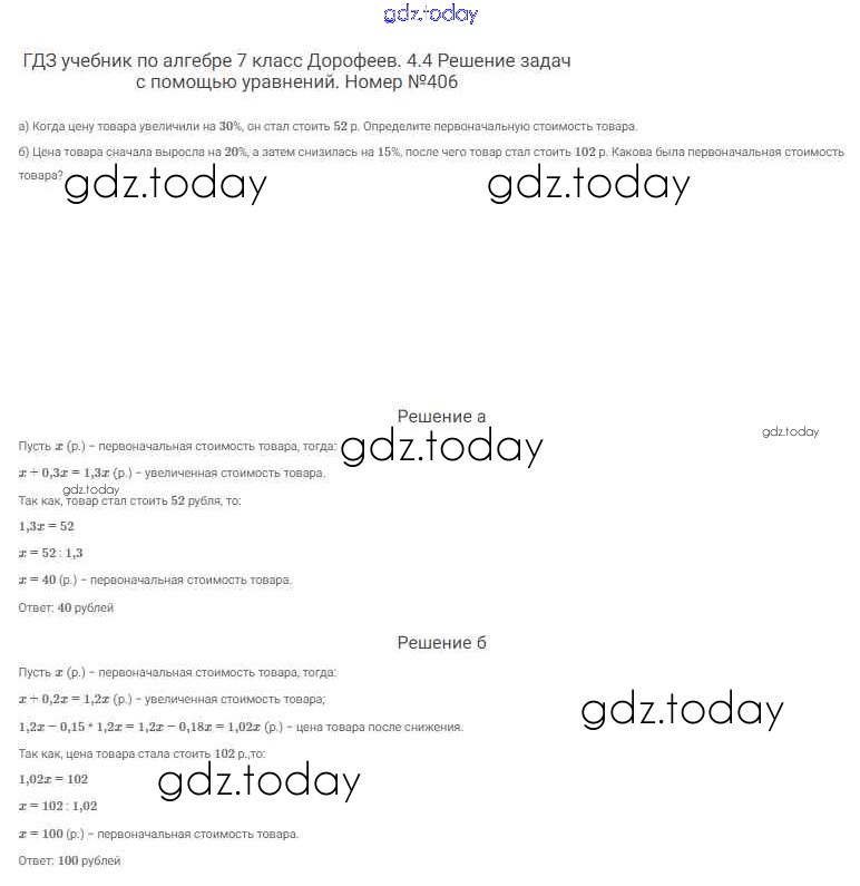 Ответы к Решение к упражнениям 406 Учебнику по Алгебре для 7 класса Дорофеев, Суворова Просвещение Академический школьный учебник 2020
