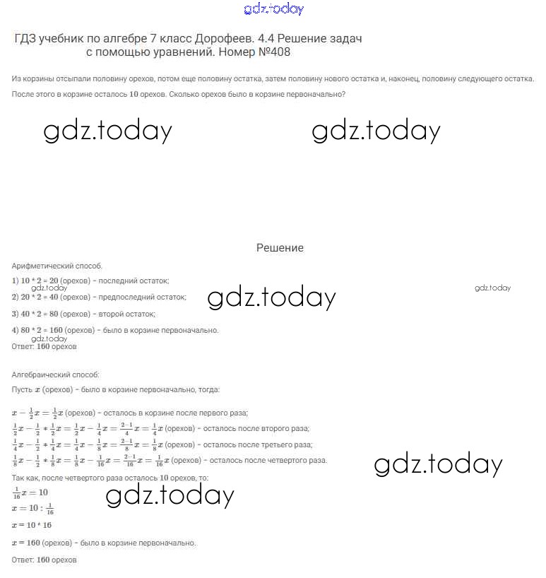 Ответы к Решение к упражнениям 408 Учебнику по Алгебре для 7 класса Дорофеев, Суворова Просвещение Академический школьный учебник 2020
