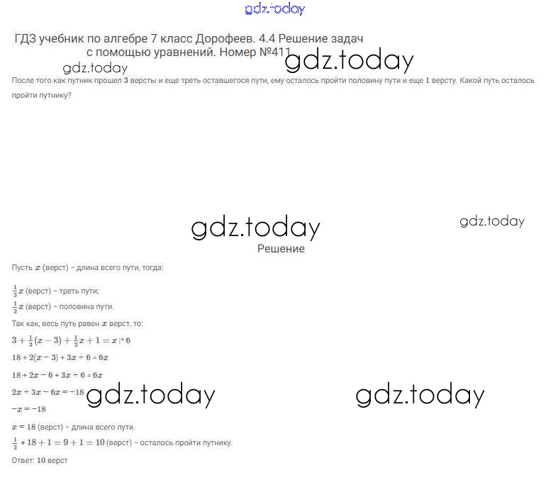 На страницах сайта gdz.today вы найдете учебный и вспомогательный материал, направленный на улучшения знаний школьной программы. ГДЗ - онлайн мир знаний Решение к упражнениям 411 Учебнику по Алгебре для 7 класса Дорофеев, Суворова Просвещение Академический школьный учебник 2020