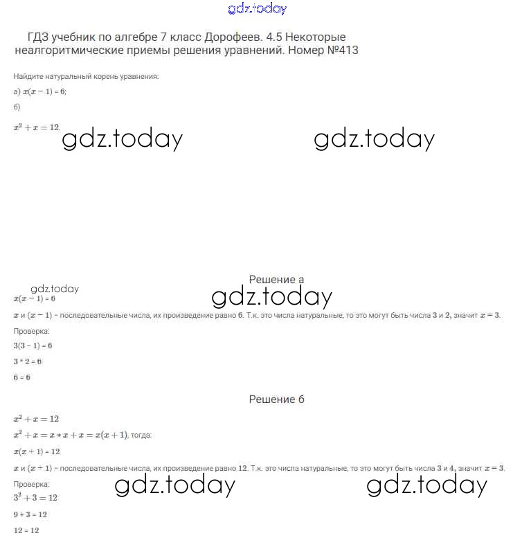 На страницах сайта gdz.today вы найдете учебный и вспомогательный материал, направленный на улучшения знаний школьной программы. ГДЗ - онлайн мир знаний Решение к упражнениям 413 Учебнику по Алгебре для 7 класса Дорофеев, Суворова Просвещение Академический школьный учебник 2020
