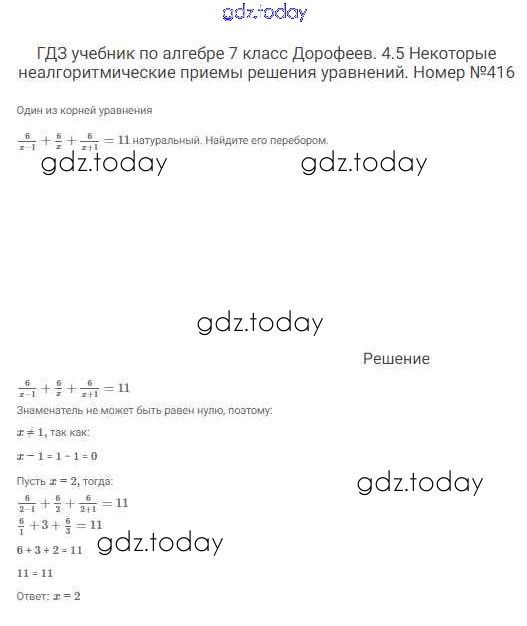 На страницах сайта gdz.today вы найдете учебный и вспомогательный материал, направленный на улучшения знаний школьной программы. ГДЗ - онлайн мир знаний Решение к упражнениям 416 Учебнику по Алгебре для 7 класса Дорофеев, Суворова Просвещение Академический школьный учебник 2020