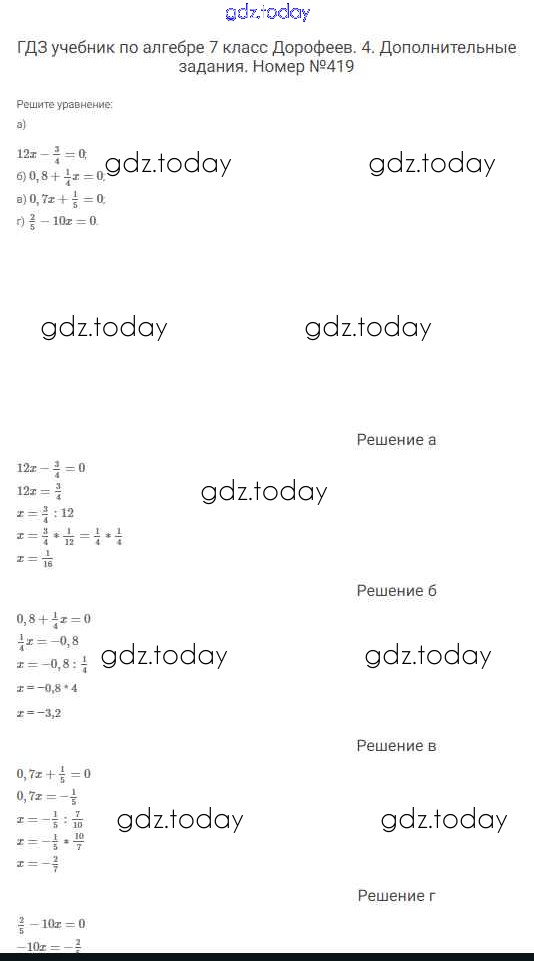 На страницах сайта gdz.today вы найдете учебный и вспомогательный материал, направленный на улучшения знаний школьной программы. ГДЗ - онлайн мир знаний Решение к упражнениям 419 Учебнику по Алгебре для 7 класса Дорофеев, Суворова Просвещение Академический школьный учебник 2020