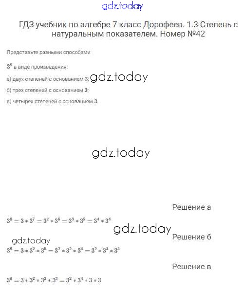 Ответы к Решение к упражнениям 42 Учебнику по Алгебре для 7 класса Дорофеев, Суворова Просвещение Академический школьный учебник 2020