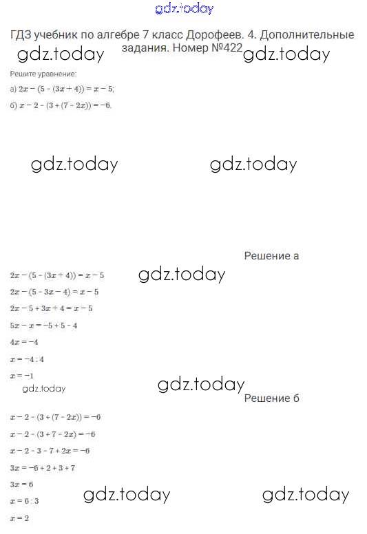 Ответы к Решение к упражнениям 422 Учебнику по Алгебре для 7 класса Дорофеев, Суворова Просвещение Академический школьный учебник 2020