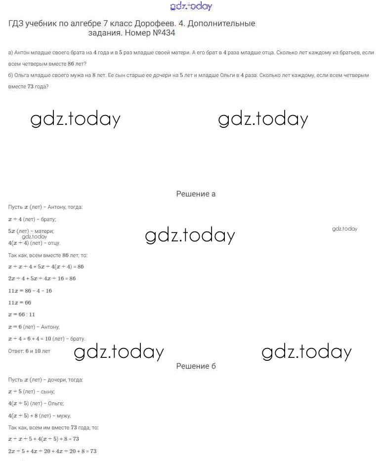 На страницах сайта gdz.today вы найдете учебный и вспомогательный материал, направленный на улучшения знаний школьной программы. ГДЗ - онлайн мир знаний Решение к упражнениям 434 Учебнику по Алгебре для 7 класса Дорофеев, Суворова Просвещение Академический школьный учебник 2020