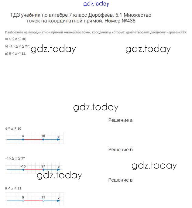 На страницах сайта gdz.today вы найдете учебный и вспомогательный материал, направленный на улучшения знаний школьной программы. ГДЗ - онлайн мир знаний Решение к упражнениям 438 Учебнику по Алгебре для 7 класса Дорофеев, Суворова Просвещение Академический школьный учебник 2020