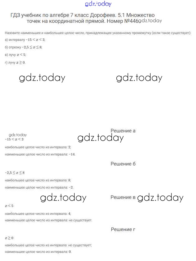 На страницах сайта gdz.today вы найдете учебный и вспомогательный материал, направленный на улучшения знаний школьной программы. ГДЗ - онлайн мир знаний Решение к упражнениям 446 Учебнику по Алгебре для 7 класса Дорофеев, Суворова Просвещение Академический школьный учебник 2020